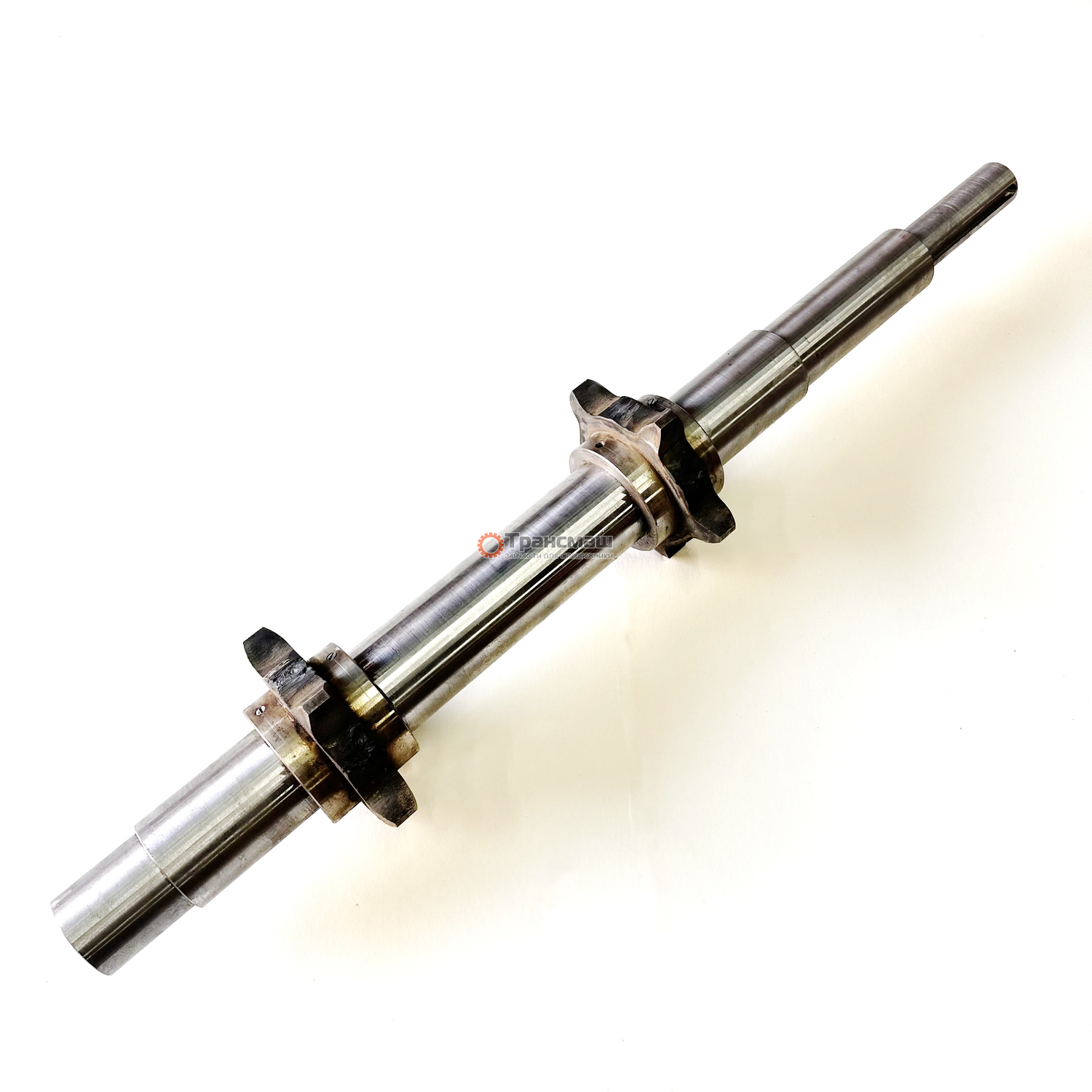 Вал привода транспортера в сборе со звездочками РП-02.00.001 ТОМЕЗ МКДУ. Длина вала - 1030мм., диаметр под редуктор RT-300-45 - 45мм, диаметр под подшипники - 65мм, диаметр под звездочки - 75мм.